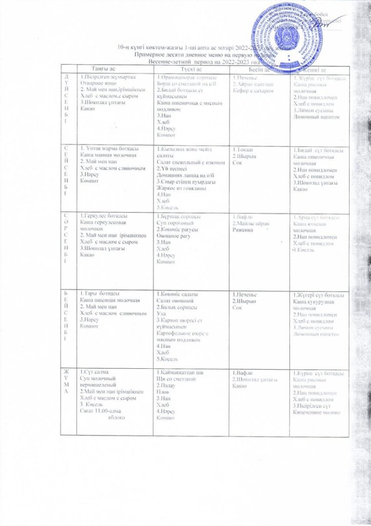 • Балабақша паспорты